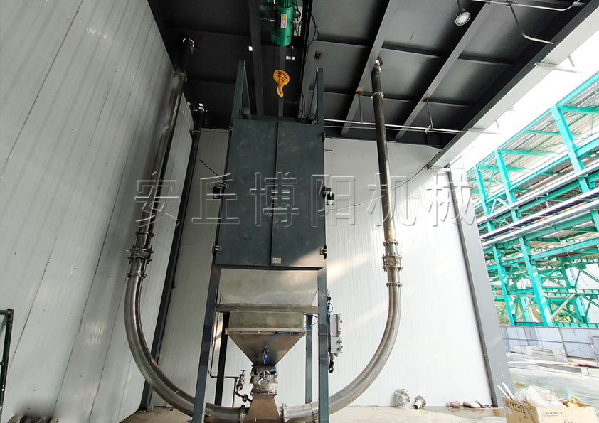 安丘博陽機械不僅有用于噸袋物料的噸袋破包機,也有用于10-50KG袋裝物料的自動拆包機