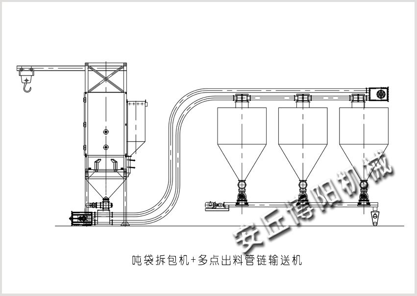 5、噸袋拆包機全自動拆包機的出料口配套設備等。